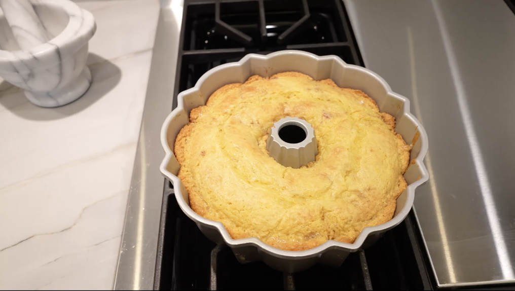 Step 8: Allow the cake to cool slightly before turning it out of the pan. Serve as is or with a light dusting of powdered sugar.